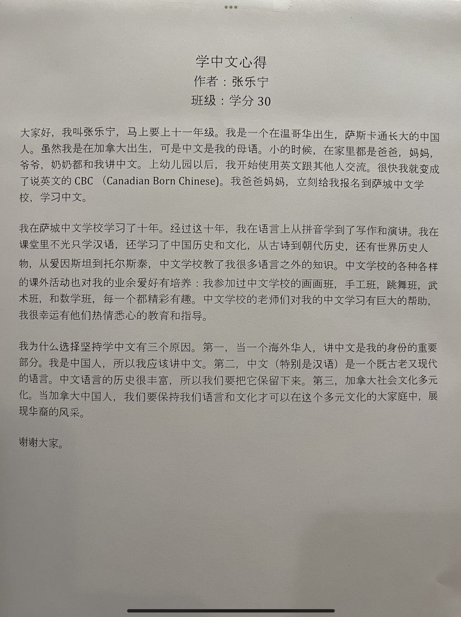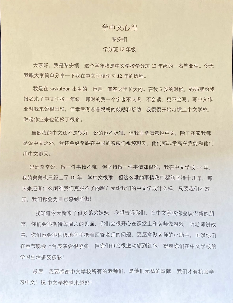 学分班学生学中文心得是什么?